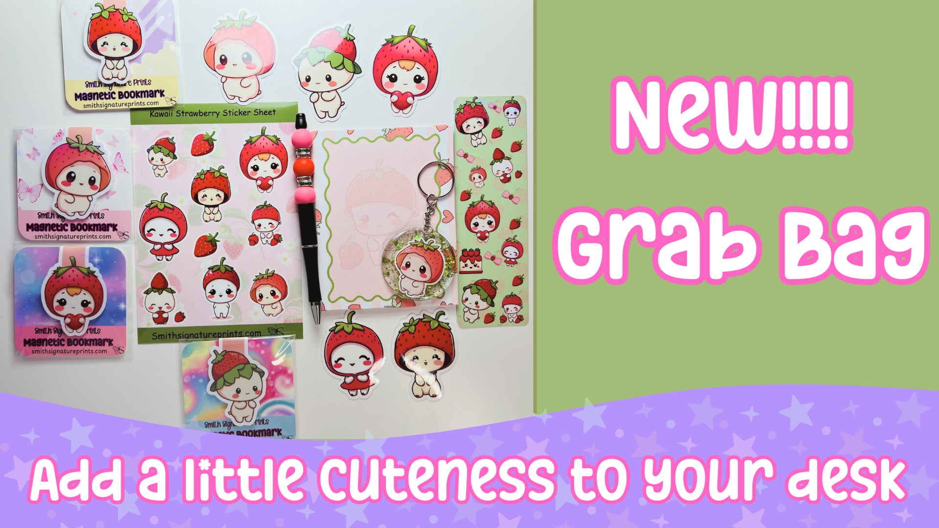 Kawaii Strawberry Grab Bag – Cute Stationery, Stickers, Memo Pads, and Surprise Goodies