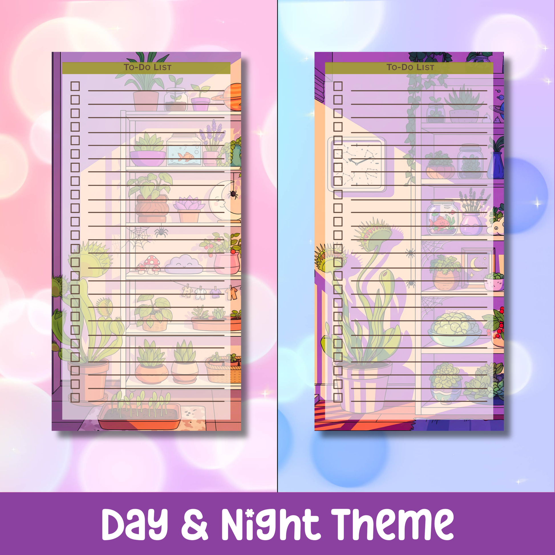 Each alternating page features a unique day or night theme — perfect for balancing productivity and relaxation. Start your mornings with bright, cheerful pages that motivate you to conquer your goals, and end your evenings with calm, dreamy designs to reflect and unwind.